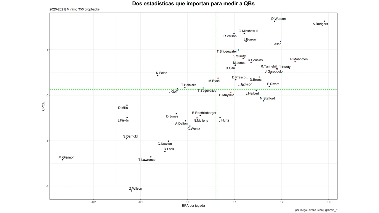 Partamos de esta gráfica, que es importante para observar quiénes son los mejores QB en toda la NFL.